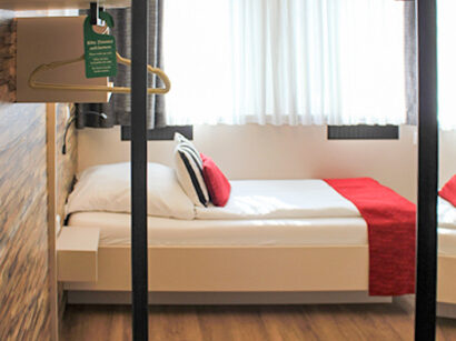 Die Fenster sind in diesen Doppelzimmern etwas höher gesetzt. Genießen Sie die freundliche Atmosphäre und nutzen Sie die vielen Ablagemöglichkeiten für Kleidung und Reisetaschen.